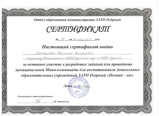 Муниципальное бюджетное дошкольное образовательное учреждение детский сад № 2 ЗАТО Озерный Тверской области
