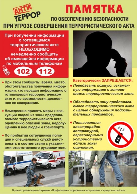 Инструктаж с работниками ДОУ и разработка памяток о порядке действий в случае угрозы совершения террористического акта. |