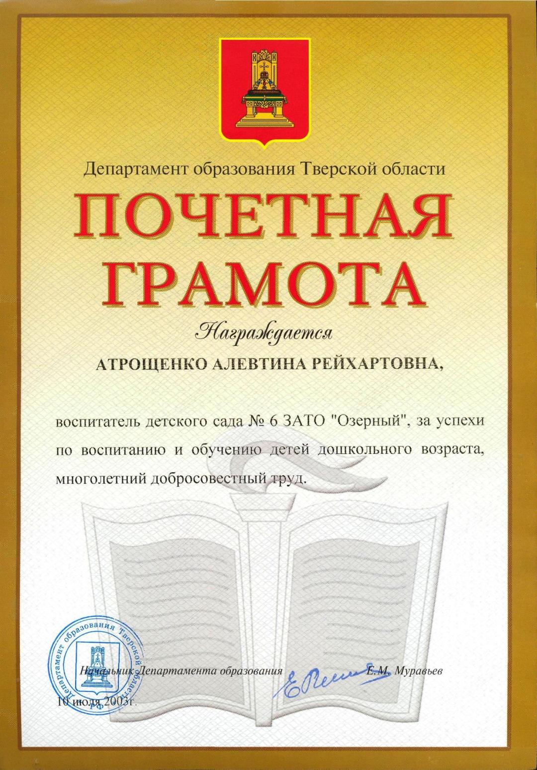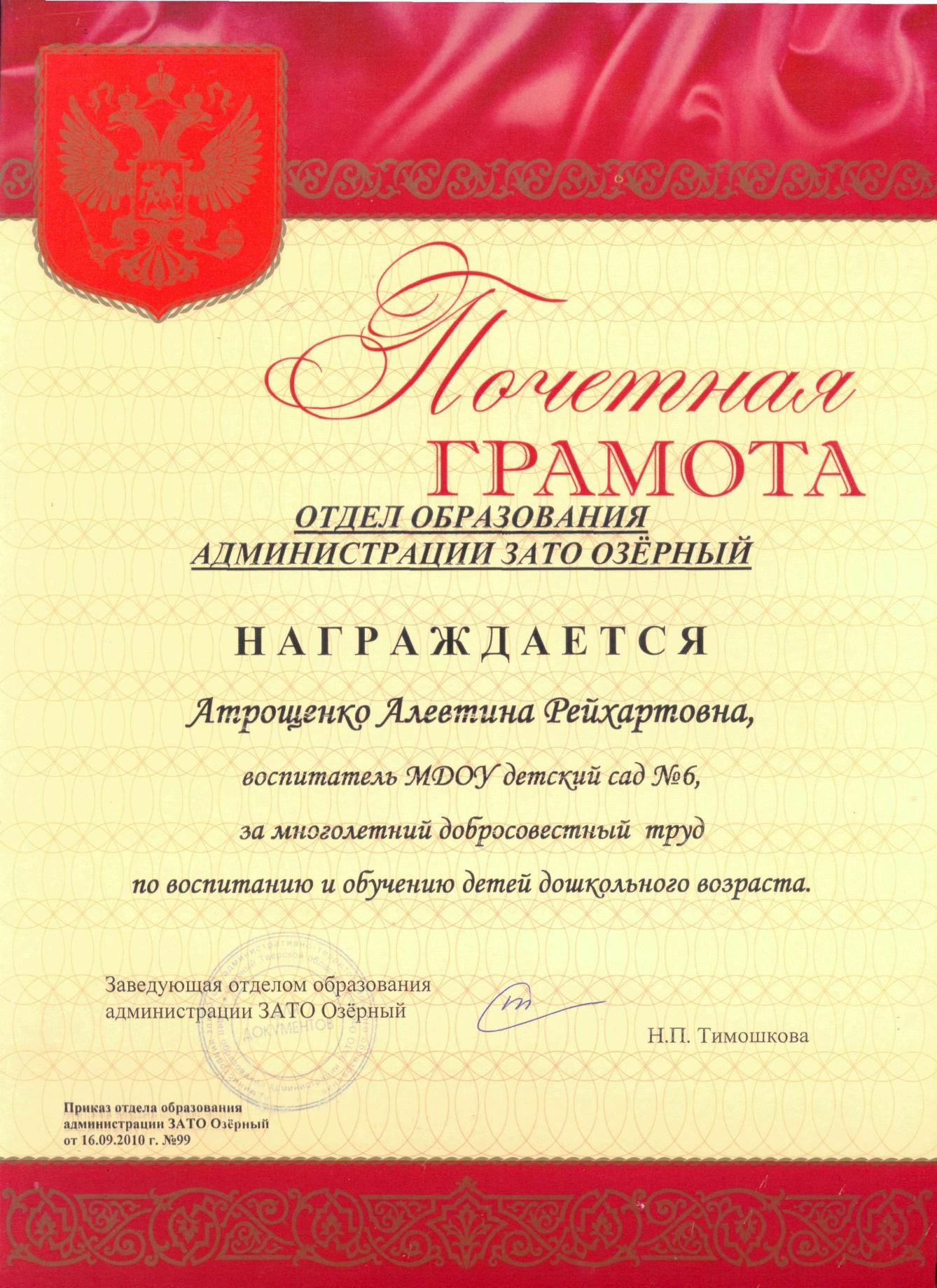 Атрощенко Алевтина Рейхартовна