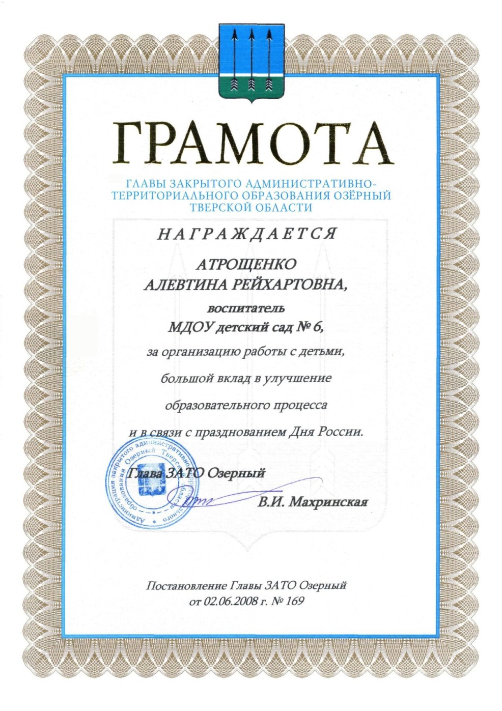 Муниципальное бюджетное дошкольное образовательное учреждение детский сад № 2 ЗАТО Озерный Тверской области