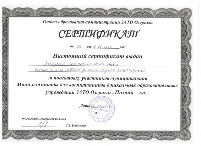 Муниципальное бюджетное дошкольное образовательное учреждение детский сад № 2 ЗАТО Озерный Тверской области