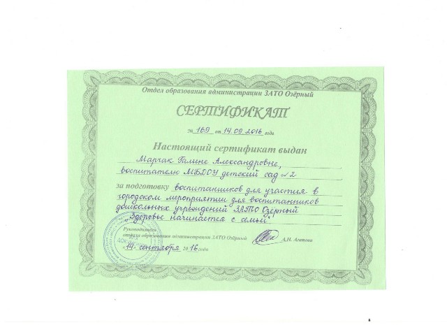 Муниципальное бюджетное дошкольное образовательное учреждение детский сад № 2 ЗАТО Озерный Тверской области