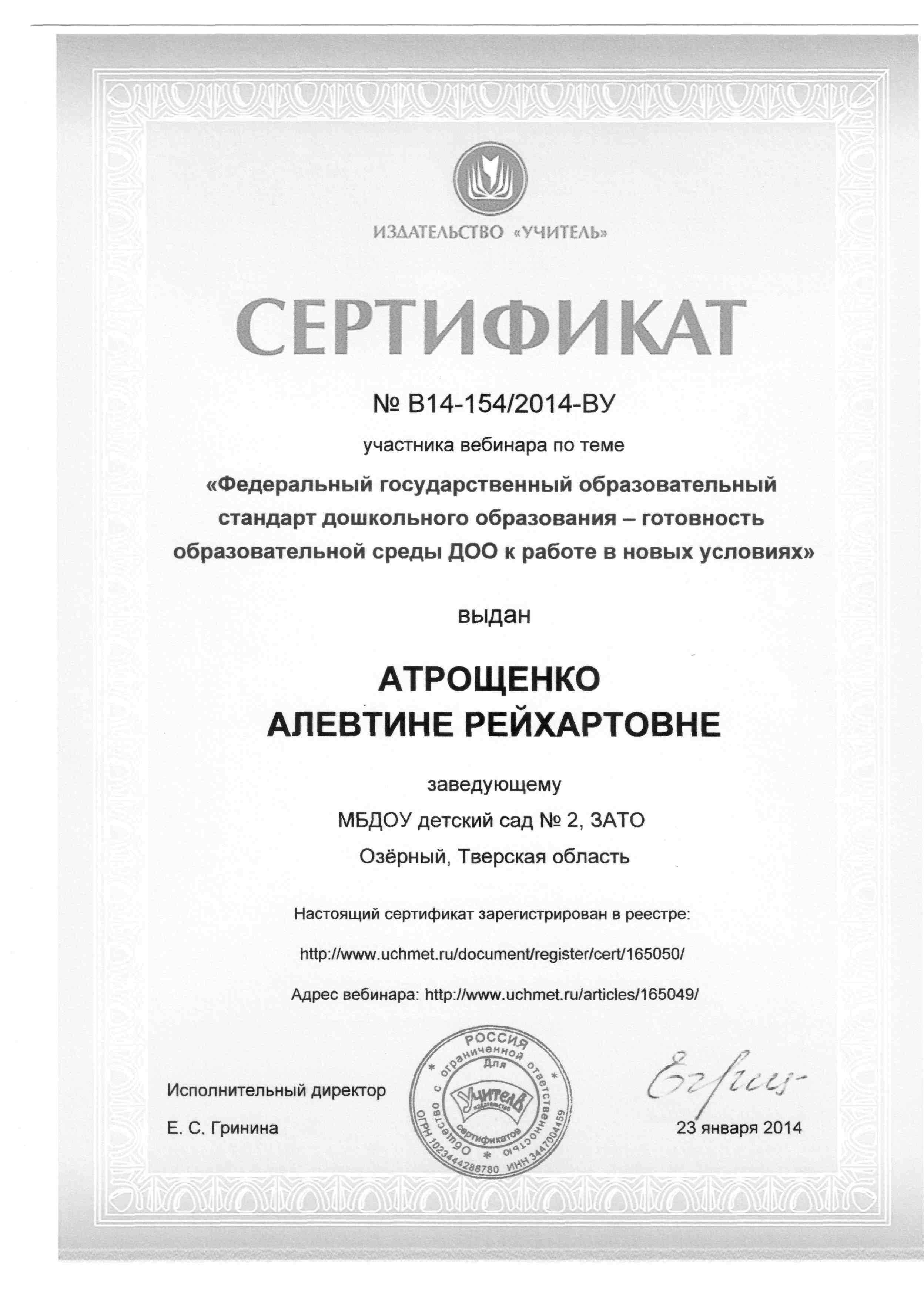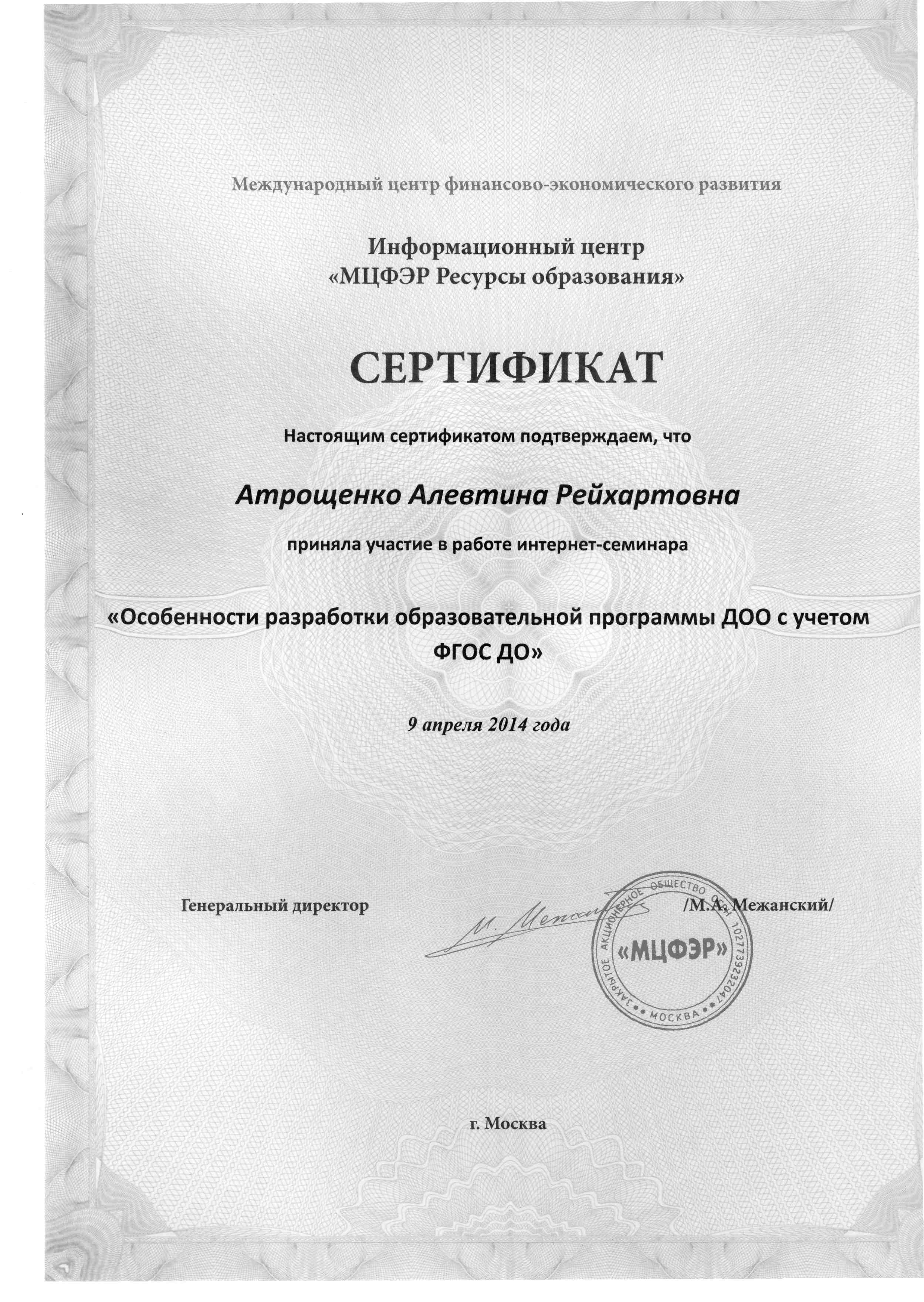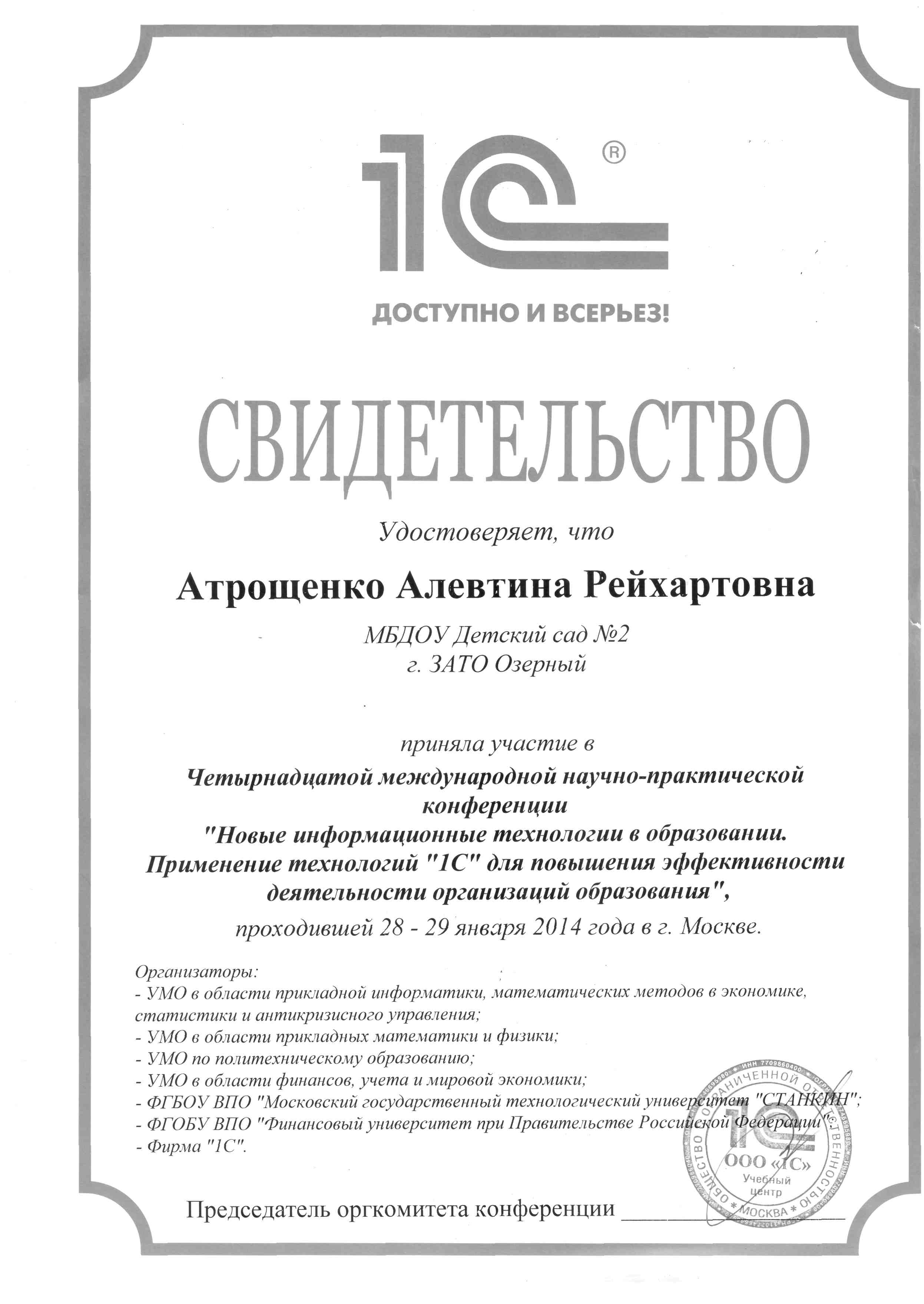 Атрощенко Алевтина Рейхартовна